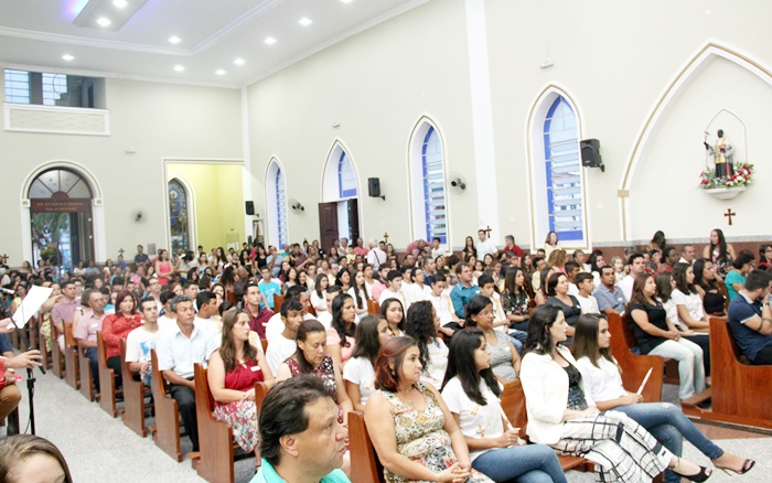 Na noite desta Quinta – Feira (20/01), 59 crismandos receberam o sacramento da Crisma A cerimônia foi presidida pelo Cônego José Douglas Baroni falou sobre a importância do Sacramento da Crisma, sacramento do envio e reconhecimento da maturidade. Ao final da celebração, o presidente agradeceu aos catequistas pelo empenho ao longo deste ano de preparação dos jovens e adultos, os quais foram abraçados pessoalmente.