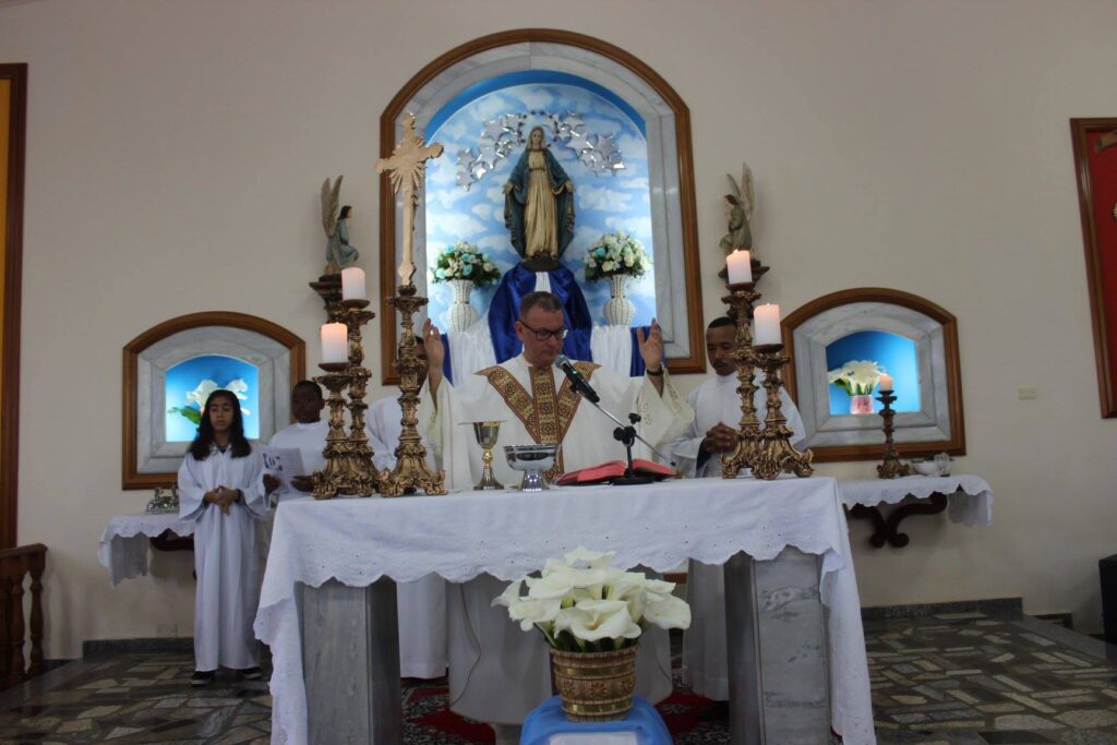 A Paróquia Nossa Senhora das Graças realizou entre os dias 22 e 27 de novembro a Festa em louvor a sua padroeira. Foram dias de muita oração em que pedimos a proteção materna de Maria que vem nos ensinar a viver com fé e amor os ensinamentos do Evangelho. Aproveitando o ano do Laicato a festa teve como tema “Maria, A Mãe Leiga a Serviço do amor” e assim meditamos sobre a importância de Maria como exemplo no nosso servir a Deus pois ela ensina-nos a sermos leigos e leigas obedientes ao plano do amor de Deus.