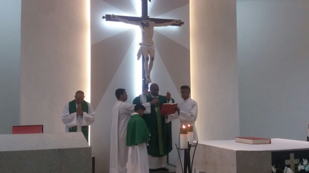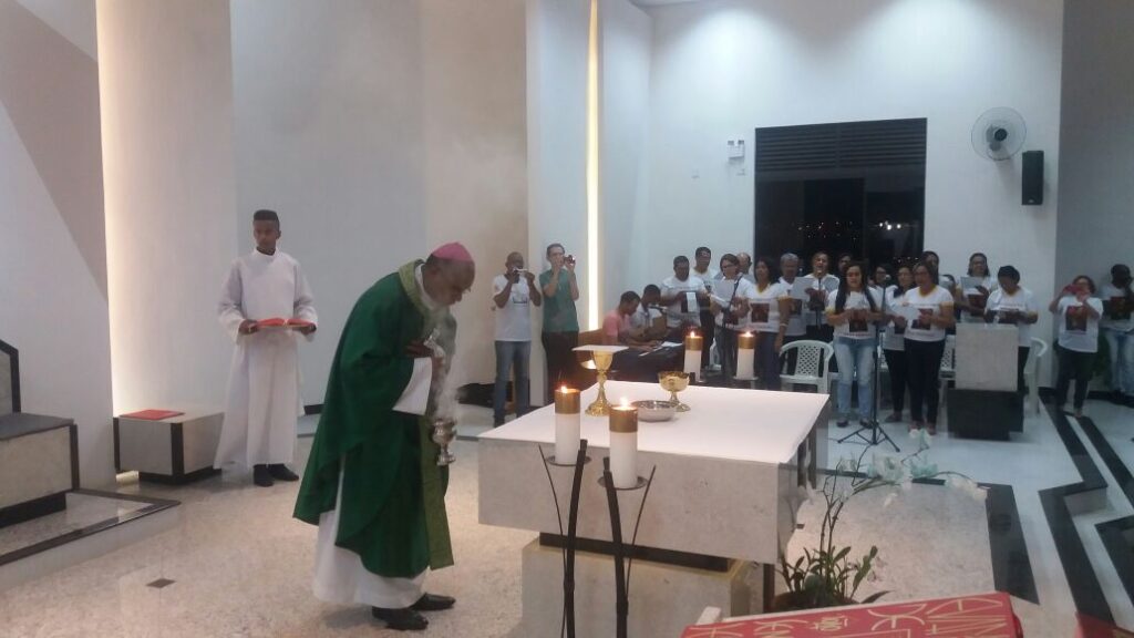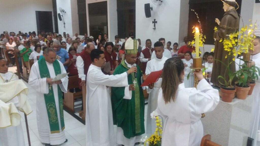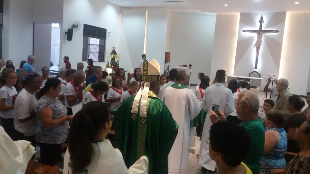 Tivemos uma novena bem participada com a presença de muitos devotos, e de vários sacerdotes que se somaram conosco nessa preparação. Mas alegria deste dia se faz maior através da presença de nosso pastor, Dom Pedro, que veio na nossa comunidade! A celebração eucarística das 19h da Terça-feira, 24 de outubro presidida pelo Exmo. Revmo. Dom Pedro Cunha Cruz DD. Bispo Diocesano foi a que encerrou a Novena em louvor a Santo Antônio de Santana Galvão, celebrada na paróquia desde o dia 16. Quanta coisa bonita, vivenciamos! De coração, sendo minha primeira festa nesta paróquia agradeço pelo testemunho de fé, tanto daqueles que participaram da novena e na festa no dia 25, como a todos que trabalharam para que esta festa fosse tão completa. É esta fé testemunhada pelo povo que alimenta o coração do padre.