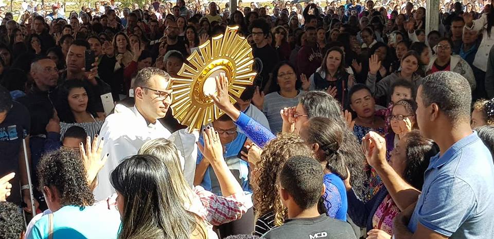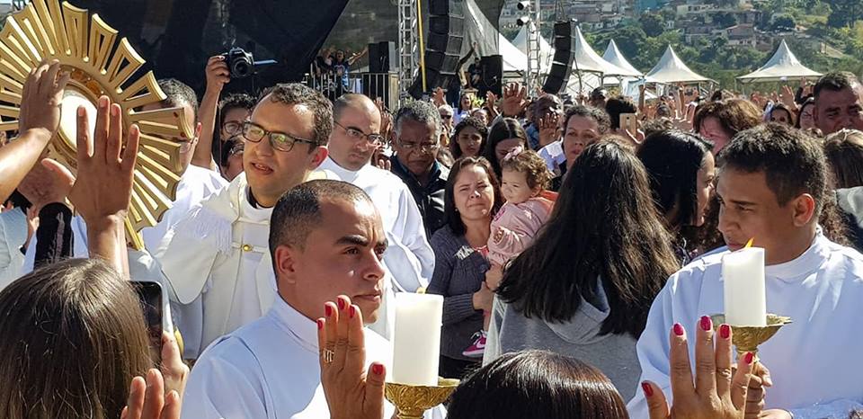 Eis que Ele precisa entrar. Sim, Ele, Senhor Jesus. Momento único. O Translado com o Santíssimo Sacramento. Quanta emoção! Lágrimas rolaram no rosto daquela multidão ao ver Jesus passar. Em cada olhar, um pedido, um agradecimento, uma súplica. E Ele acolhia a todos. Foi ao encontro de todos, sem distinção. Mais uma vez, a emoção tomou conta daquele lugar. A multidão acorria até Jesus.