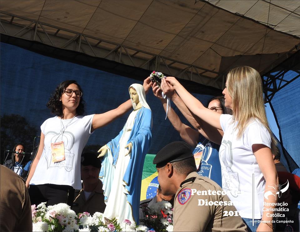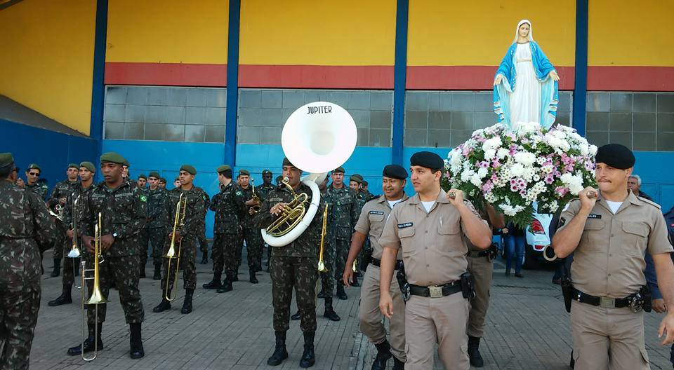 Em seguida, deu-se a abertura do evento pelo presidente diocesano da RCC, Regimar e a palavra do Assessor Diocesano, Pe. José Honório Arantes Ramos. Maria não poderia ficar de fora, e claro, ela adentrou o espaço. Quanta emoção! Levada pelos soldados da Polícia Militar e Corpo de Bombeiros, ao som da Corporação Musical da EsSA – Escola de Sargentos das Armas, a emoção tomou conta de todos os corações.
