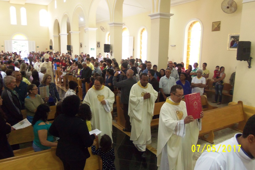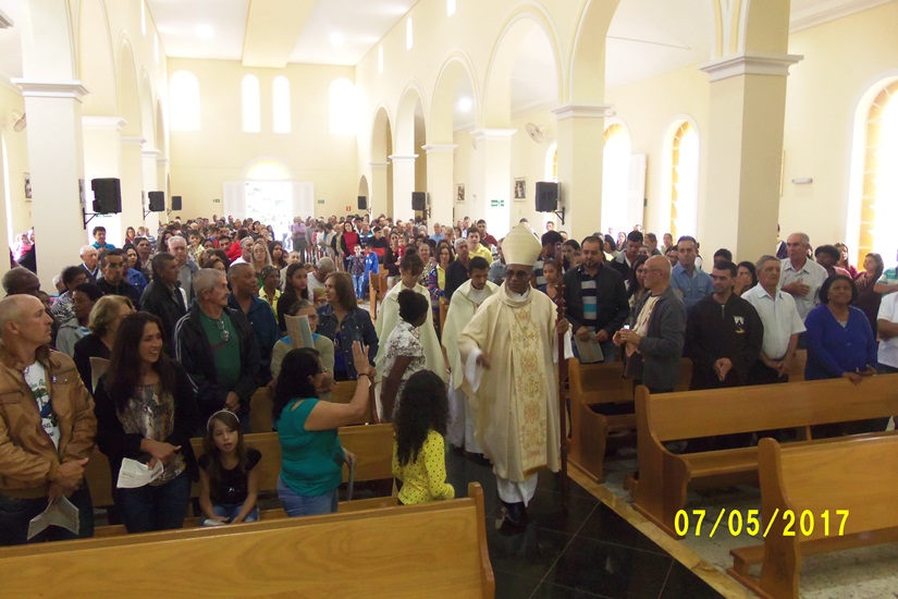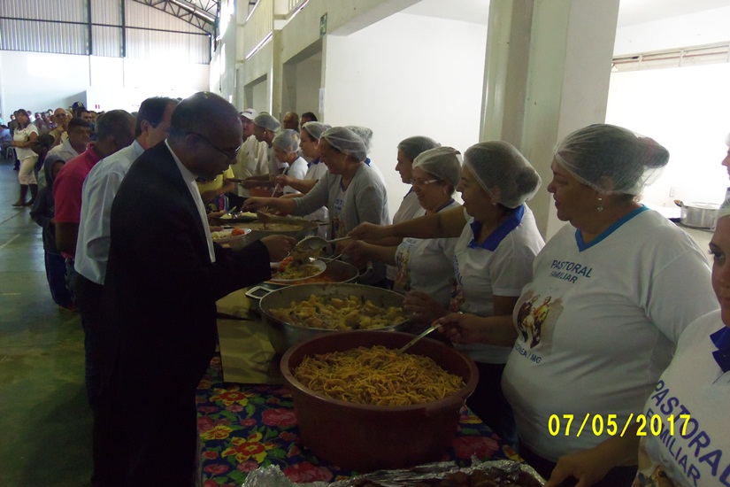 D. Pedro Cunha Cruz, nosso bispo diocesano presidiu na Igreja Matriz de Nossa Senhora Aparecida a celebração eucarística, conclusiva dessa 27ª. Romaria do Trabalhador(a). Somos levados a refletir sobre o trabalho digno, sobre o sujeito humano desempregado, dos que sofrem acidentes, dos que perdem seus direitos trabalhistas, dos que pagam a conta. Por isso é necessário se organizar para que haja mudanças positivas em vista da construção de um mundo melhor, com garantia de direitos de vida. Devemos construir “pontes” entre as pessoas. Encerramos esse dia celebrativo dos trabalhadores(as) em torno da mesa da partilha.