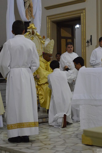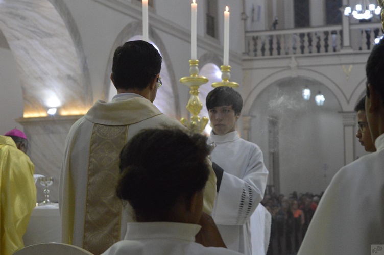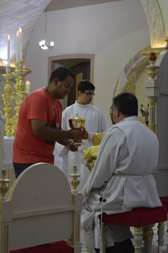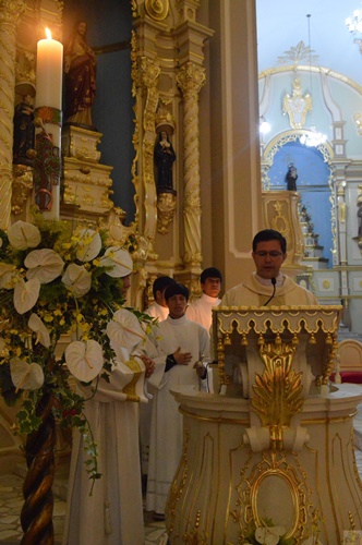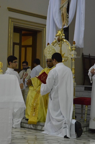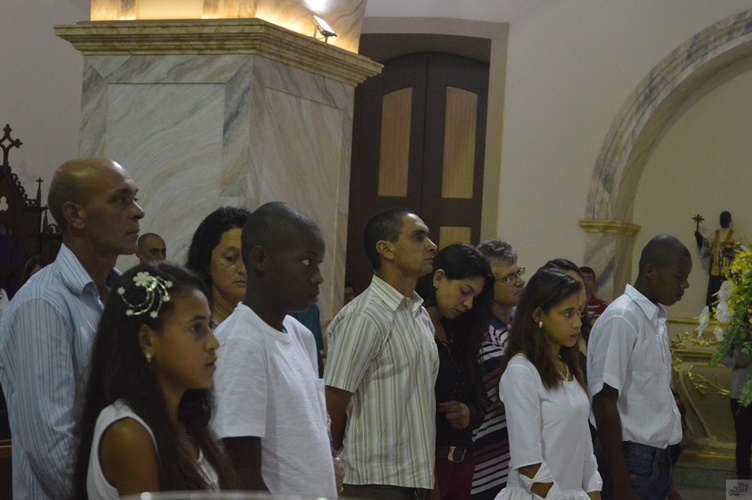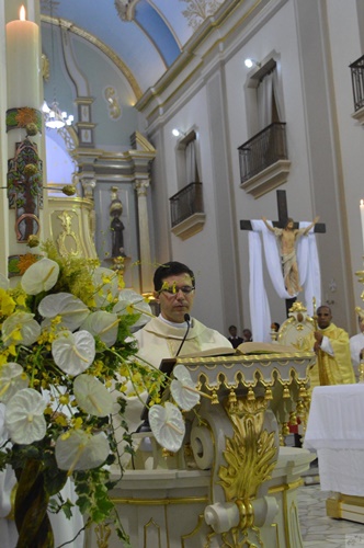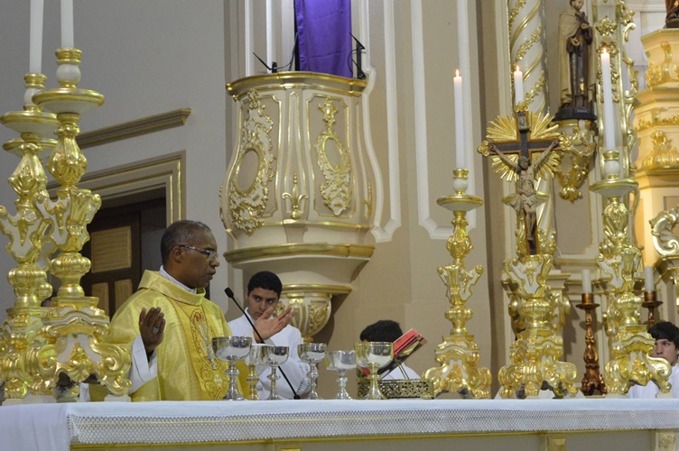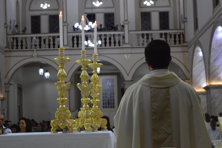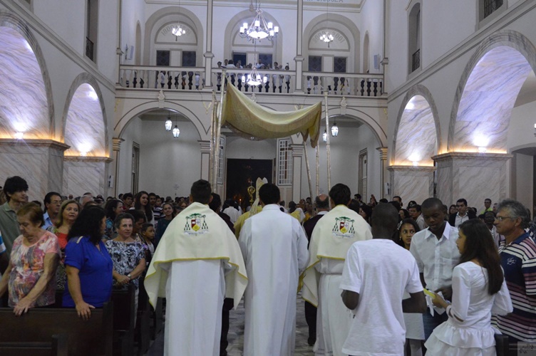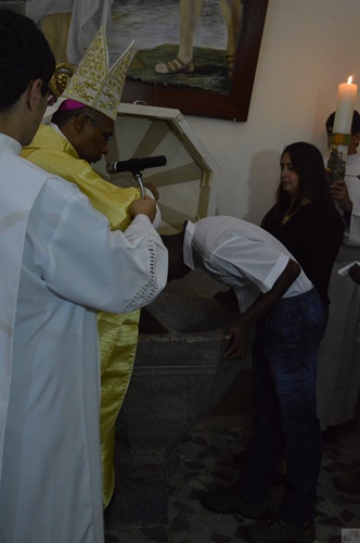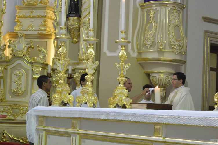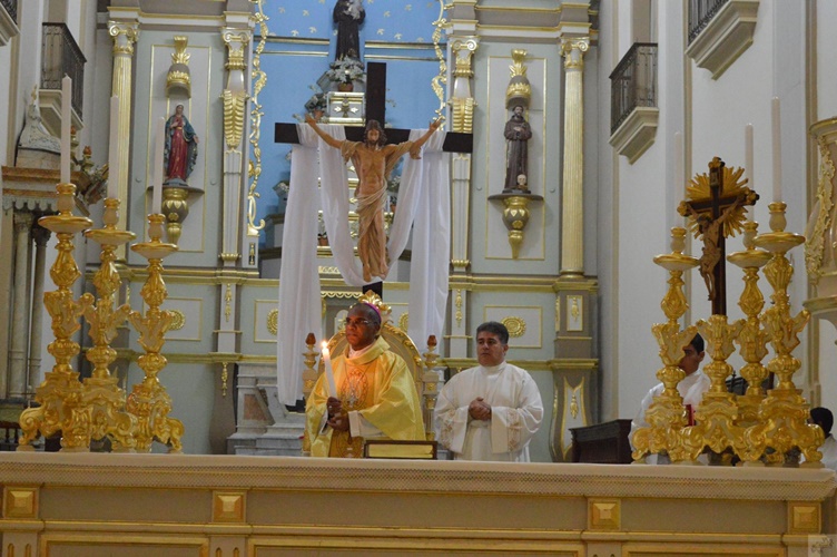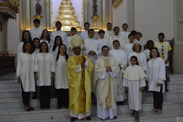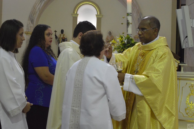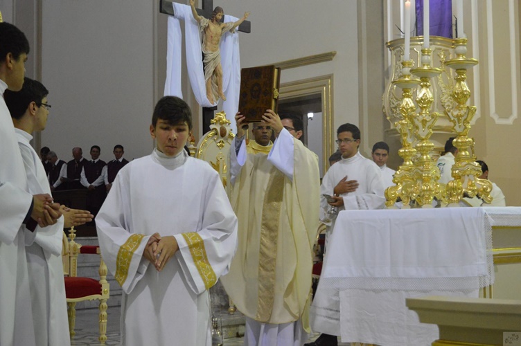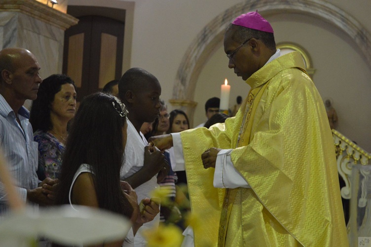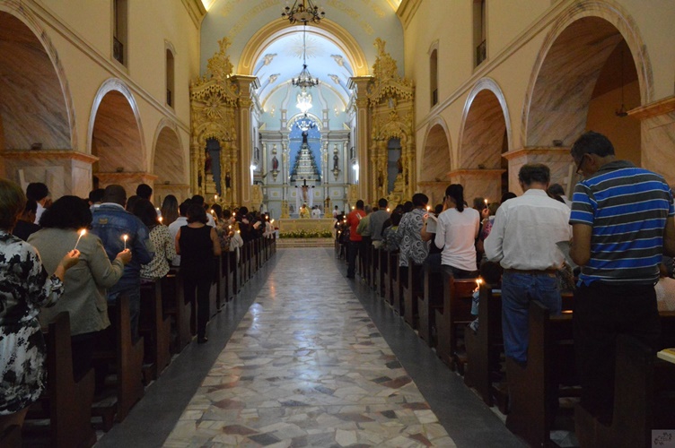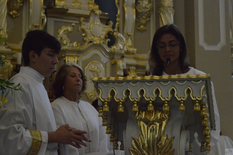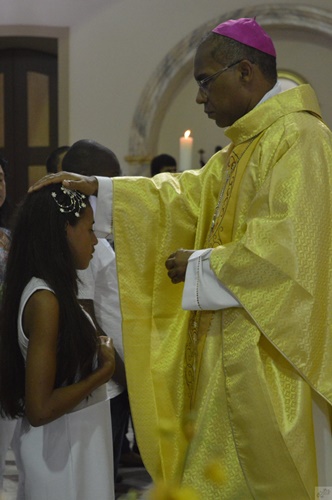 Ó noite de alegria verdadeira, que une de novo o céu e a terra inteira! Esse é o refrão de uma das melodias propostas para o Exultet, o precônio pascal, e sintetiza muito o espírito com que devemos participar e vivenciar esta celebração que é o ápice de toda a vida católica. A celebração foi presidida por D. Pedro Cunha Cruz e co-celebrada pelo vigário paroquial Pe. Edson Pereira de Oliveira. Participou a Irmandade do Santíssimo Sacramento, os Ministros da Comunhão além dos familiares e padrinhos dos quatro catecúmenos que receberam os sacramentos de iniciação cristã na celebração.