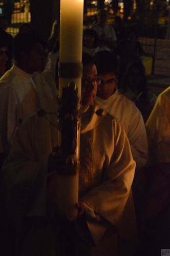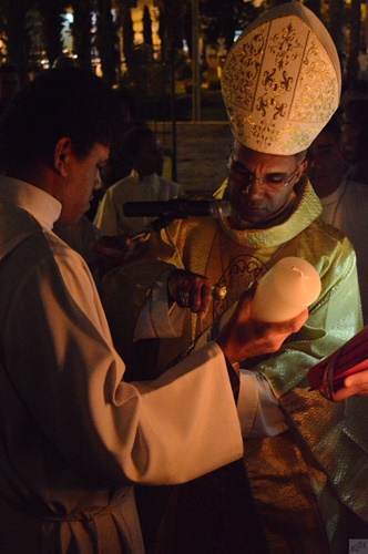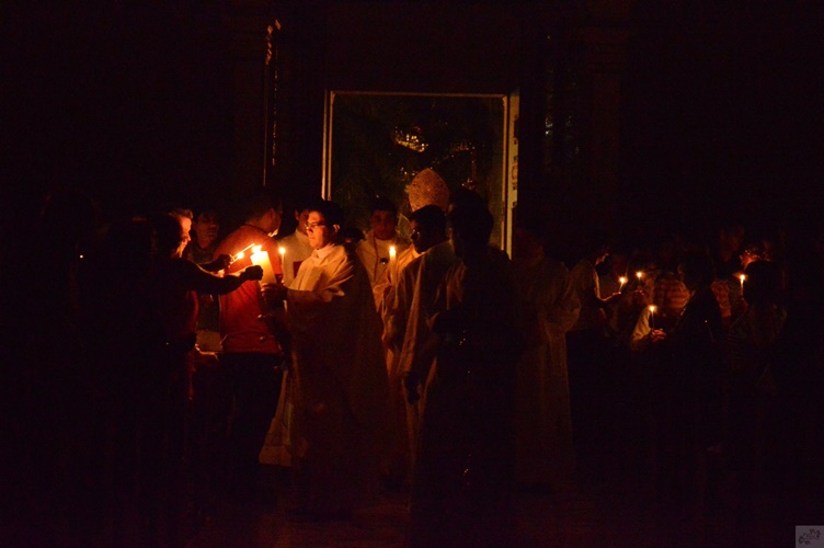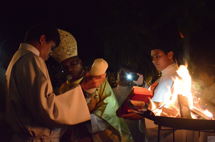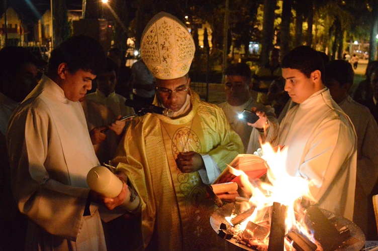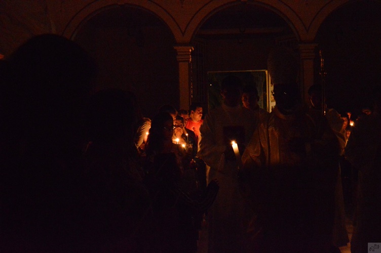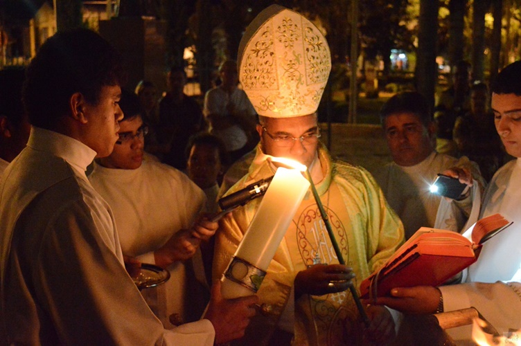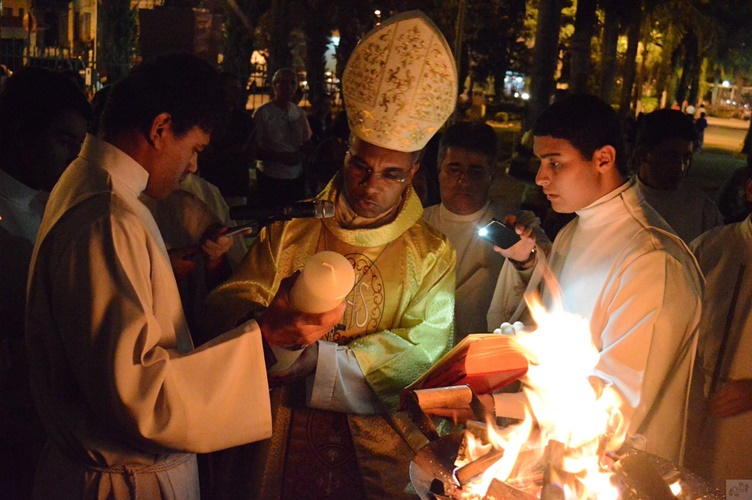 A Vigília Pascal é tão importante para os católicos que sua estrutura é totalmente diferente da estrutura de uma missa comum. Ela tem início na área externa da igreja, com a Liturgia da Luz, onde o presidente da celebração abençoa o fogo novo e o Círio Pascal. É o próprio Cristo que vence as trevas da morte e ressurge para a luz. Com os fieis com velas acesas, foi entoado o Exultet, pelo vigário paroquial, acompanhado pelo Coral Catedral.