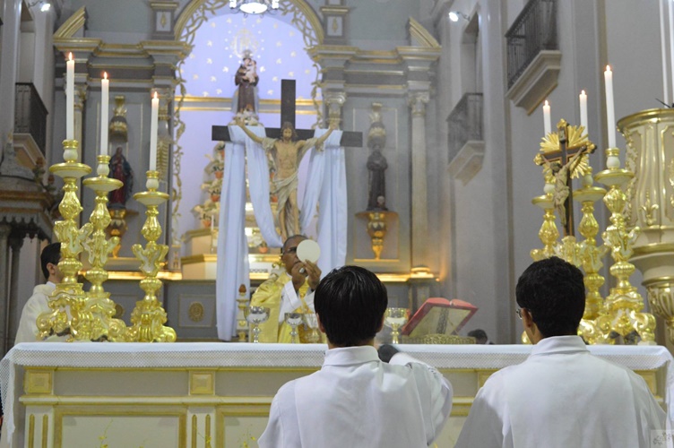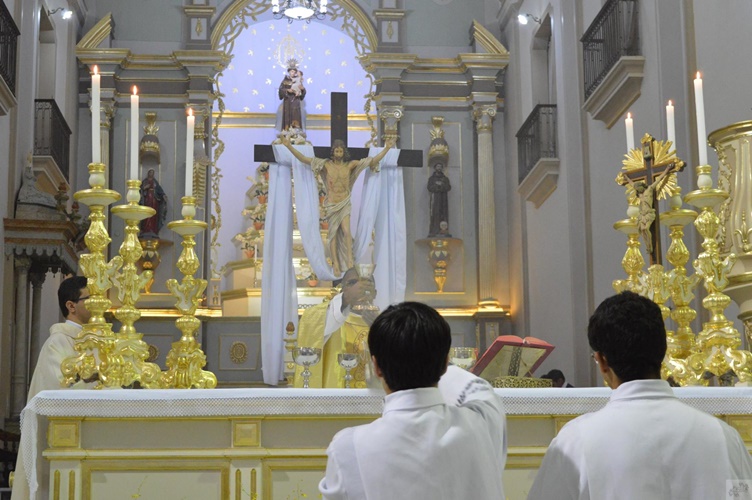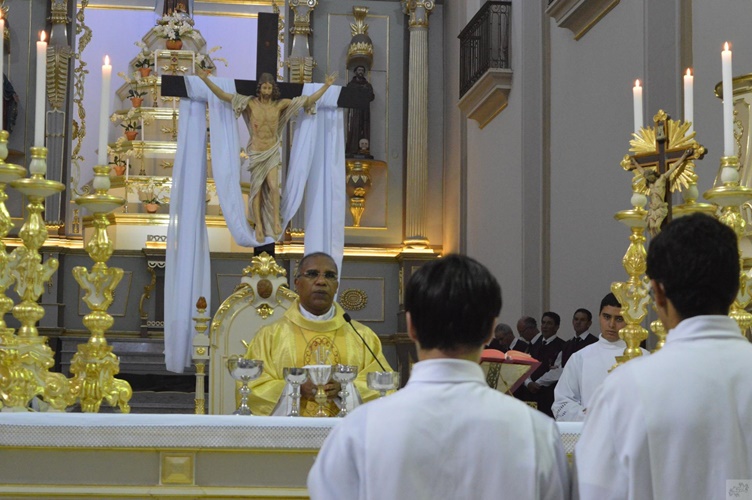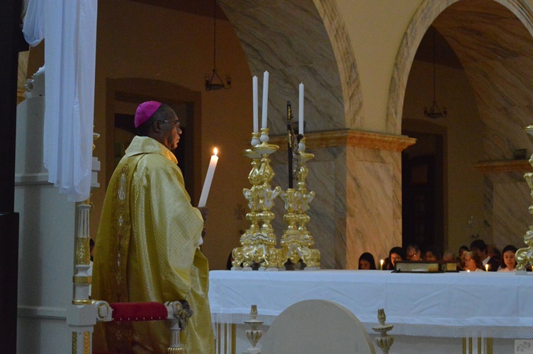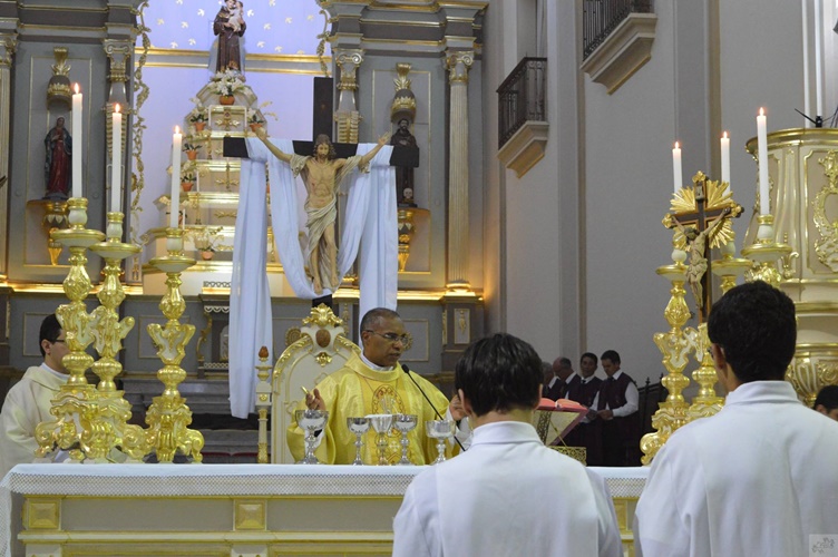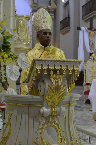 “Mas eu começo minha homilia de hoje, fazendo um agradecimento, uma observação e um elogio. Agradecendo os fieis que estão aqui essa noite. Observando quantos fiéis ontem beijaram a cruz de Cristo, eu assentado na cátedra meditava: ‘será que na Vigília Pascal, nós teremos a igreja tão cheia assim?’. Elogio também pelos fiéis que participaram durante o tempo da quaresma, que é todo um percurso espiritual que nos permite celebrar com toda plenitude e ardor a Páscoa do senhor Jesus. Elogio também os fiéis que participam do Tríduo Pascal que nos prepara para o dia de amanhã, Domenica in Laudes, o domingo da manhã da ressurreição; que observam liturgicamente o significado da importância das três celebrações, preceito para todos nós. […] Infelizmente nós temos cristãos que acham podem participar somente do Domingo de Páscoa ou de uma ou outra celebração do Tríduo Pascal”