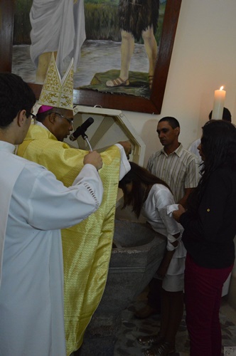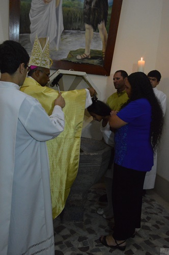 Após a homilia, teve início a Liturgia Batismal. Dom Pedro acolheu no seio da igreja quatro catecúmenos, que receberam os sacramentos de iniciação cristã: Batismo, Eucaristia e Crisma. A Liturgia Eucarística transcorreu como de hábito.