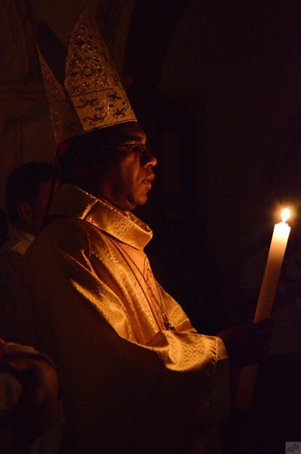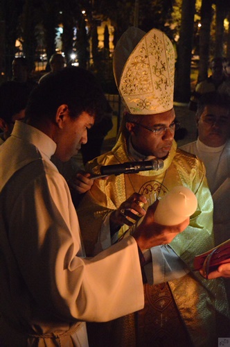A homilia de Dom Pedro iniciou de maneira diferente. Disse à Assembleia que é a única celebração onde não é necessário dizer muita coisa. Explicou que a liturgia é tão rica, que não há necessidade que o presidente acrescente nada. A Vigília Pascal é tão cheia de significado, que palavras não traduzem o sentido desses sinais.