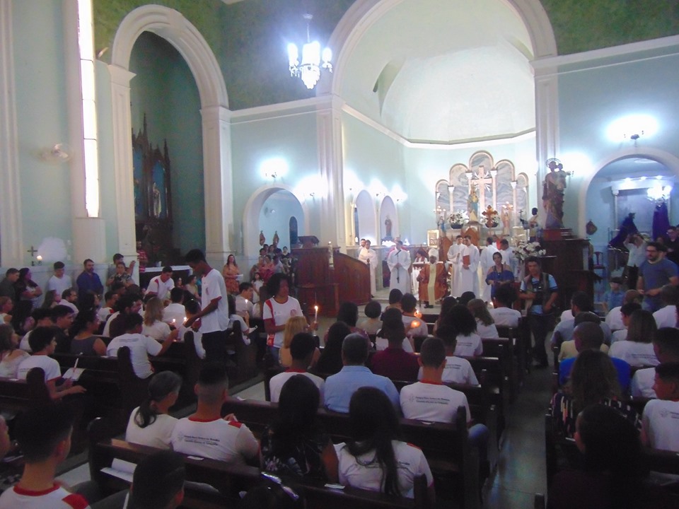 Na celebração, com grande participação paroquial, o Sr. Bispo salientou a importância da continuação dos jovens crismados na vida paroquial, sendo eles propagadores da Palavra de Deus.