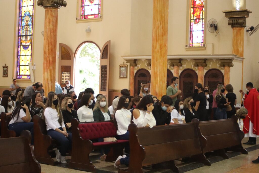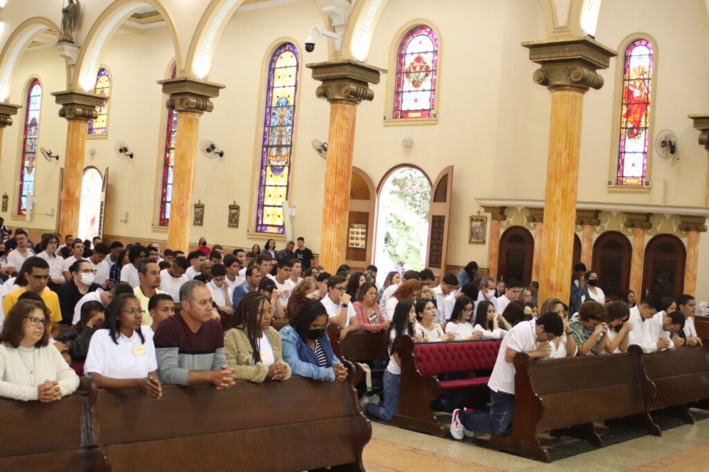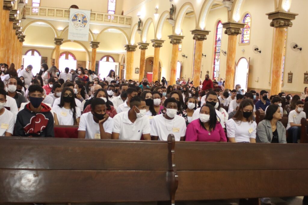 Um dia antes das celebrações, os adolescentes e jovens, juntamente com seus familiares e padrinhos, se reuniram no santuário para o momento da vigília, que é uma preparação espiritual para a recepção do sacramento.