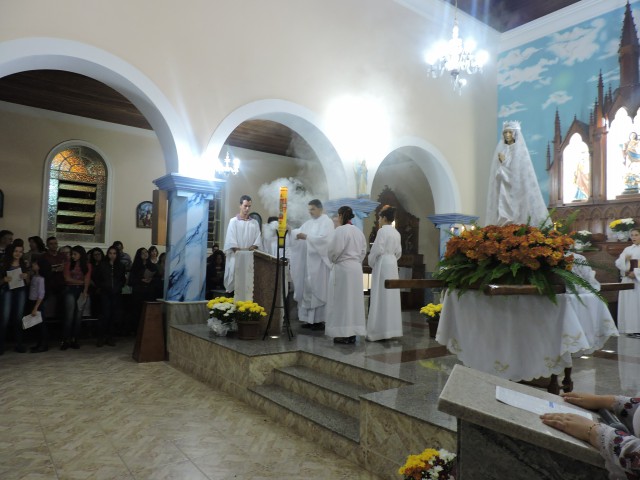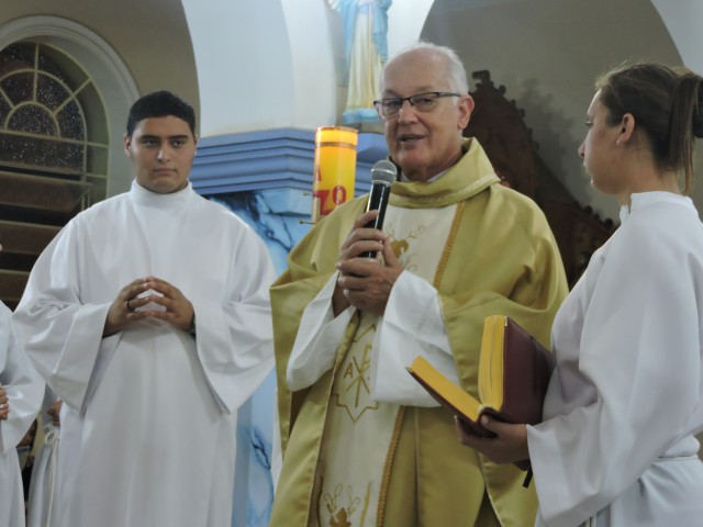 A Semana Santa, iniciada no dia 9 de abril, foi conduzida e abrilhantada pelo Padre Dionísio de Foltran Zamuner que com sua experiência sacerdotal e de vida encantou a todos com suas pregações e seu jeito simples e leve de ser e de agir, sendo solícito e prestativo para com todos e a tudo que lhe foi delegado.