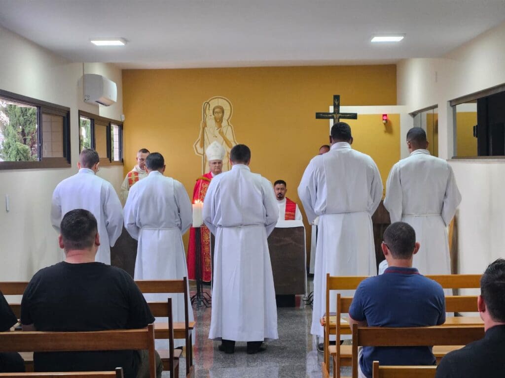 Atendendo ao dom da vocação e abraçando livremente o chamado de Deus, foram admitidos nesta sexta-feira, 06 de fevereiro, à Etapa da Configuração, na Comunidade Teológica Nossa Senhora do Carmo, os seminaristas Alan, Felipe, Matheus, Pedro Machado e Pedro Nogueira.