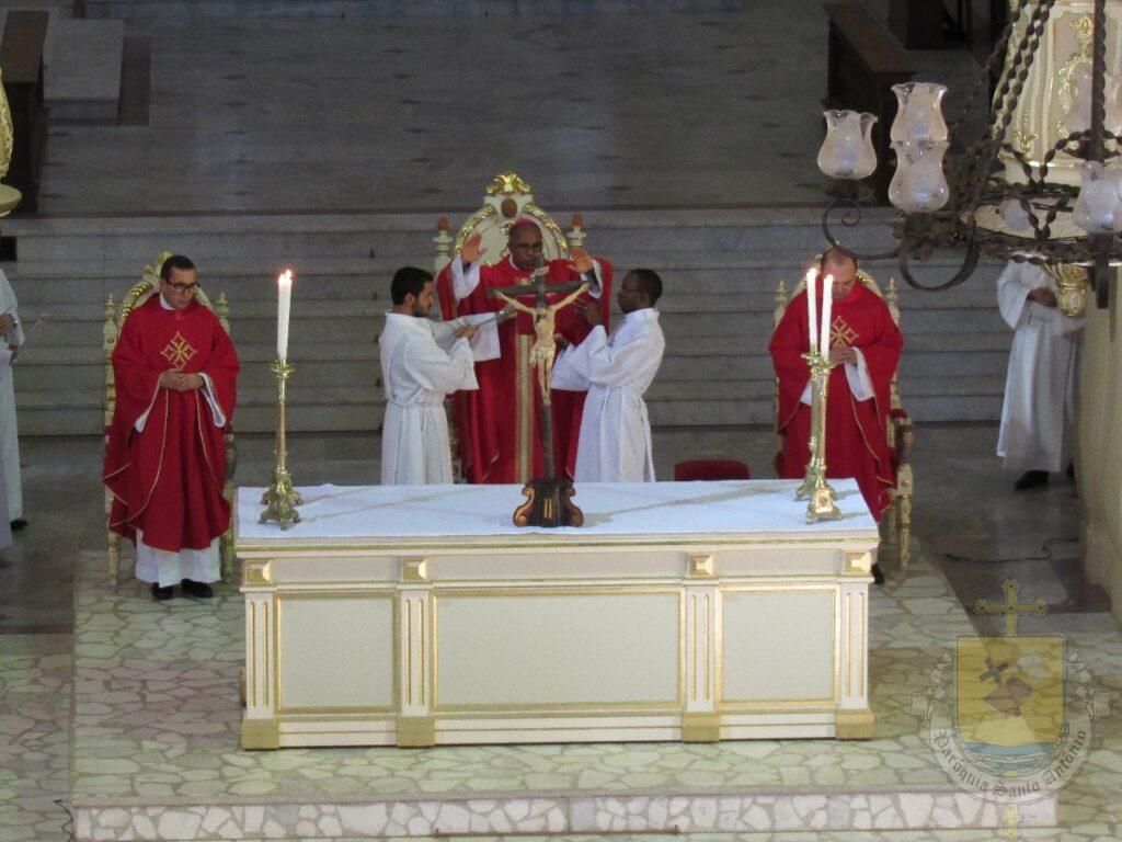 Em seguida, D. Pedro dirigiu-se à porta central da Catedral para realizar a apresentação da cruz aos fiéis, cantando três vezes “Eis o lenho da cruz, do qual pendeu a salvação do mundo.” A assembleia, auxiliada pelo Coral Catedral que entoou as canções da celebração, respondeu: “Vinde, adoremos”. O rito da apresentação e adoração da cruz vem como consequência lógica da proclamação da Paixão de Cristo. A Igreja ergue diante dos fiéis o sinal do triunfo do Senhor, que havia dito: “Quando vocês levantarem o Filho do Homem, saberão que Eu sou” (Jo 8,28)