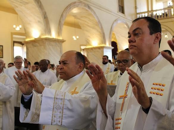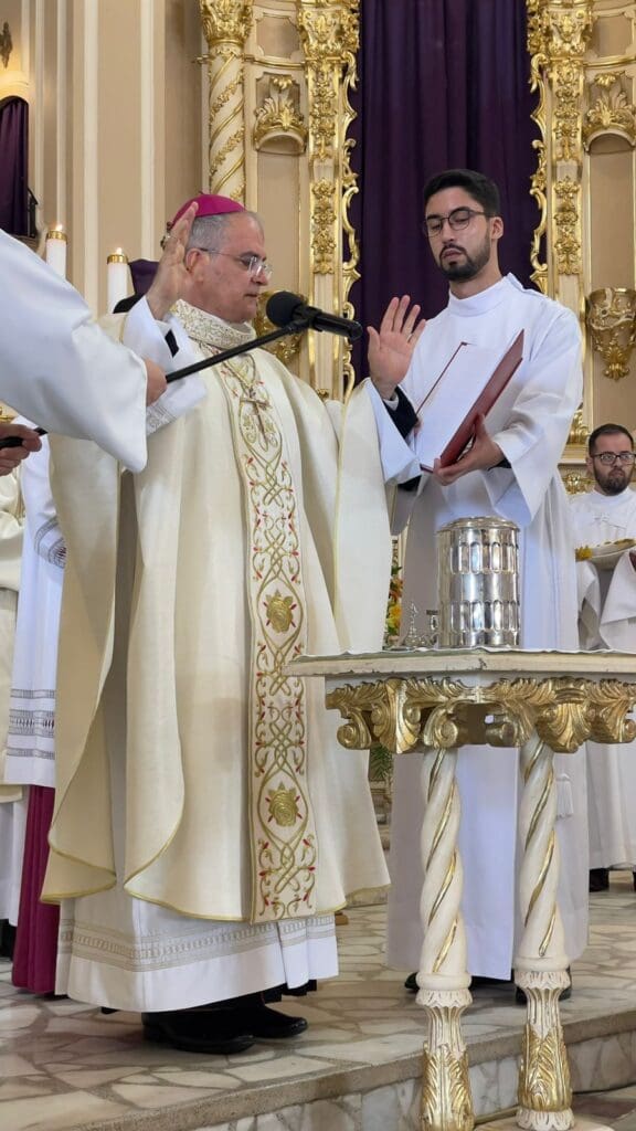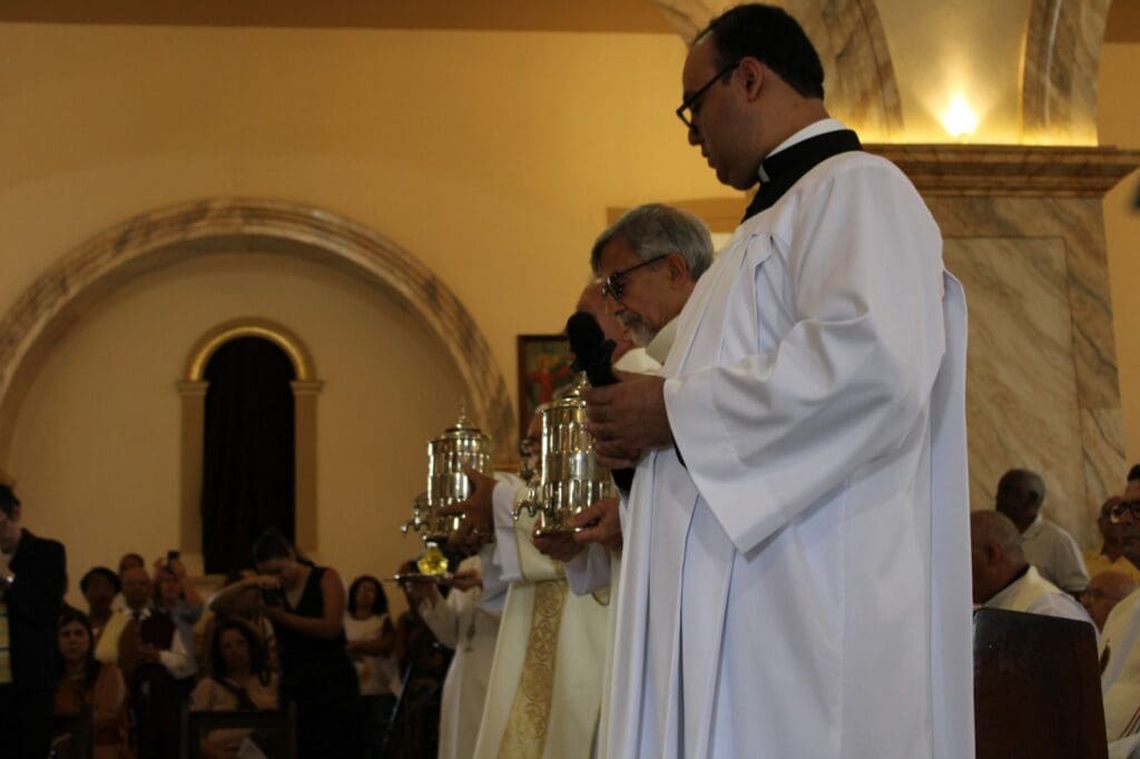 Logo após a homilia, acontece um dos momentos mais significativos da celebração: a renovação das promessas sacerdotais. Os padres reafirmam publicamente os compromissos assumidos no dia da ordenação, renovando o desejo de servir com fidelidade, viver em comunhão com o bispo e dedicar a vida ao povo de Deus. É um gesto simples, mas profundamente simbólico, que reaviva a identidade sacerdotal e fortalece a missão evangelizadora. Para o povo, é também um momento de gratidão e de oração pelos seus pastores, que se colocam novamente diante de Deus para dizer “sim” ao chamado recebido.