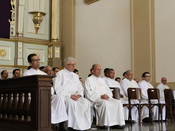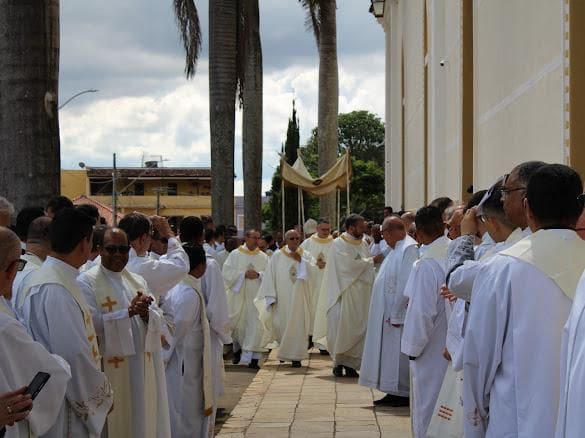 A Missa do Santo Crisma tem como marca mais evidente a presença expressiva do clero reunido ao redor do bispo diocesano. Na Catedral Santo Antônio, em Campanha, padres de diversas paróquias e comunidades se unem ao seu pastor para celebrar a unidade da Igreja. É um momento forte de comunhão, no qual o presbitério se coloca ao lado daquele que recebeu o múnus de governar, evangelizar e santificar o povo confiado à Diocese. No último dia 2 de abril, conforme estimativas, cerca de 150 sacerdotes estiveram presentes na celebração. A Diocese da Campanha conta com aproximadamente 100 padres entre diocesanos e religiosos, mas durante a Semana Santa o número cresce significativamente. Sacerdotes de congregações e institutos religiosos são convidados para auxiliar nas confissões, pregações e atendimentos pastorais, elevando em cerca de 50% o número de padres atuando no território diocesano nesse período. Esse reforço evidencia a importância pastoral da Semana Santa e a vitalidade da Igreja local.