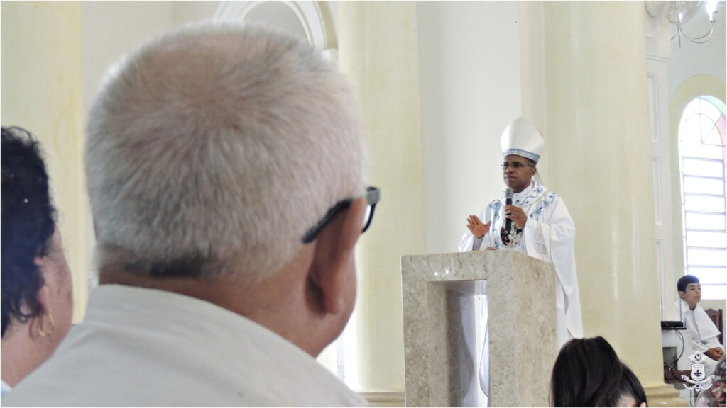 Sua excelência reverendíssima, Dom Pedro Cunha Cruz começou a sua homilia ressaltando o tempo do Advento, que para nós é um tempo de esperança. Continuando, ele incentivou os paroquianos a celebrar com entusiasmo a festa da Imaculada Conceição.