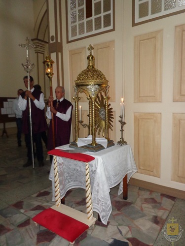 Após a última bênção, já na Catedral, pe. Edson convidou a assembleia para, juntos, realizarem a Jornada de Oração pelo Brasil” convocada pela CNBB. Após a leitura do comunicado enviado às dioceses, o vigário convidou a assembleia à oração, respondendo: “Pai Misericordioso, nós vos pedimos pelo Brasil”
