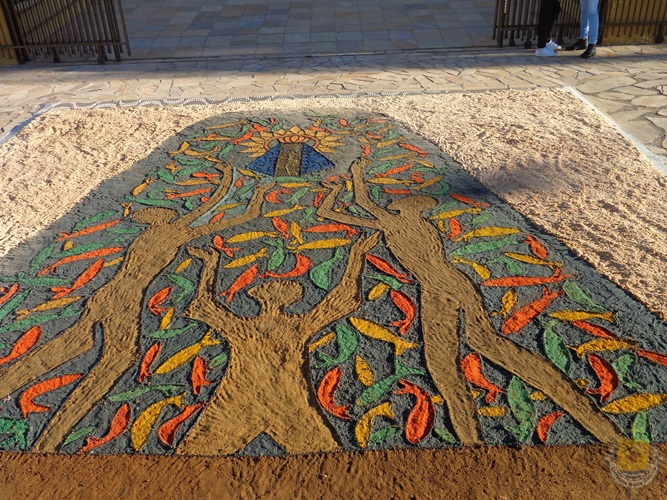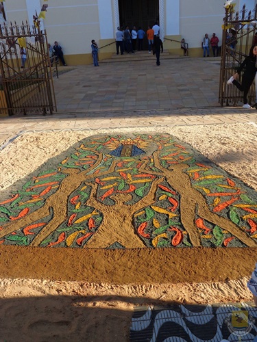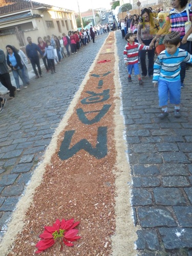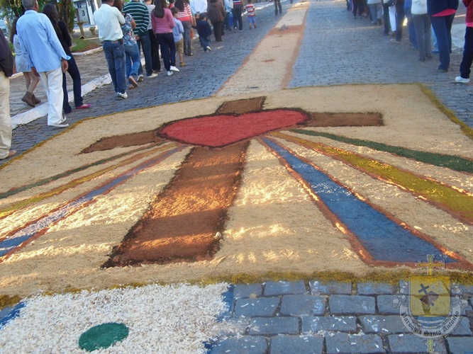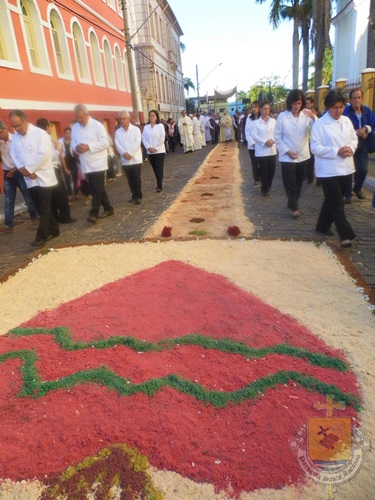 A tradição dos tapetes de Corpus Christi foi introduzida no Brasil pelos colonizadores portugueses. Muitas cidades enfeitam as ruas com tapetes coloridos para a passagem do Santíssimo Sacramento. A confecção dos tapetes representam a manifestação pública da crença dos fiéis no Jesus Sacrementado. Os desenhos, geralmente são temas eucarísticos. E os materiais utilizados são próprios de cada local. Aqui em Campanha, rica em oficinas de artesanato e marcenarias, o principal material é a serragem. As equipes de ornamentação começam as atividades no começo da manhã. Para melhor organização, a prefeitura municipal demarca o trajeto da procissão, assinalando o caminho por onde as equipes deverão confeccionar o tapete.