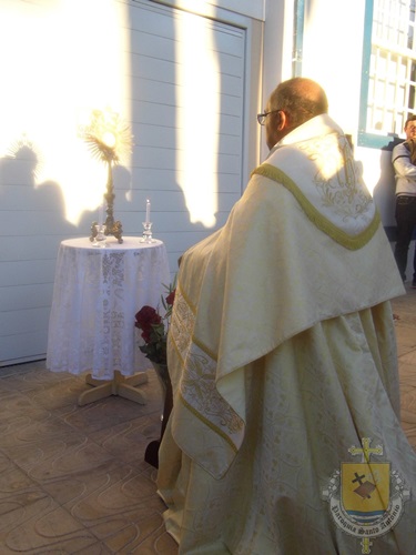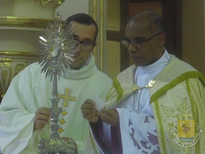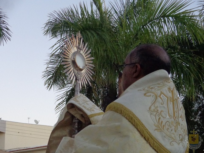 “O Santo Evangelho, o sexto capítulo de João, temos o discurso do Pão da Vida. Mais uma vez Jesus resgata a importância do pão. Hoje é a festa da presença real de Cristo! […] Jesus pega essa imagem: ‘Este pão que eu vos dou leva para a vida eterna!’. O que nós comungamos na eucaristia hoje é uma antecipação da eternidade. […] Mas assim como o alimento de Jesus era fazer a vontade do Pai, ele nos dá o alimento para quem come a sua carne e bebe o seu sangue. Por isso Ele fala da unidade: ‘Quem come a minha carne e bebe o meu sangue permanece em mim e eu nele.’ Daí a ideia do sacramento da unidade: Jesus está unido a nós quando comungamos deste augusto sacramento da eucaristia!”