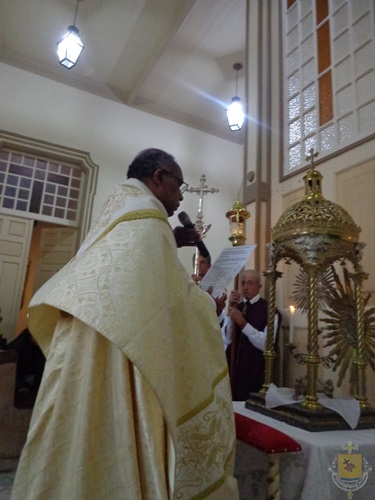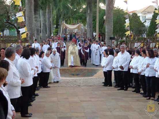 Na última quinta-feira, dia 15 de junho, a Igreja celebrou a Solenidade do Santíssimo Corpo e Sangue de Cristo. Na paróquia Santo Antônio de Campanha, sé diocesana, foram celebradas 3 missas: 7h, 10h e 15h. Durante a celebração das 10h, os Ministros da Comunhão realizaram, na presença do vigário paroquial, Con. José Hugo Goulart, a renovação dos votos. Às 15h, foi celebrada a missa solene, presidida pelo bispo diocesano, D. Pedro Cunha Cruz. Após a celebração, foi realizada a procissão com o Santíssimo Sacramento pelas ruas da cidade. A celebração vespertina foi concelebrada pelo pároco e chanceler do bispado, Pe. Luzair Coelho de Abreu; pelo vigário e reitor do Seminário Propedêutico S. Pio X, Pe. Edson Pereira de Oliveira. Cantou a celebração, o Coral Catedral, sempre presente nas celebrações e momentos solenes da paróquia.