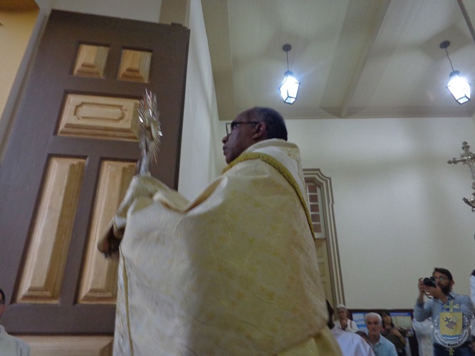 Antes do início da procissão, aproveitando a presidência do bispo na celebração, o Conselho Pastoral Paroquial, representado pela sua diretoria, prestou uma homenagem D. Pedro, uma vez que, nesta sexta-feira, dia 16, o bispo celebra o seu natalício.