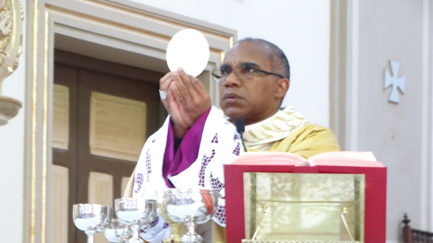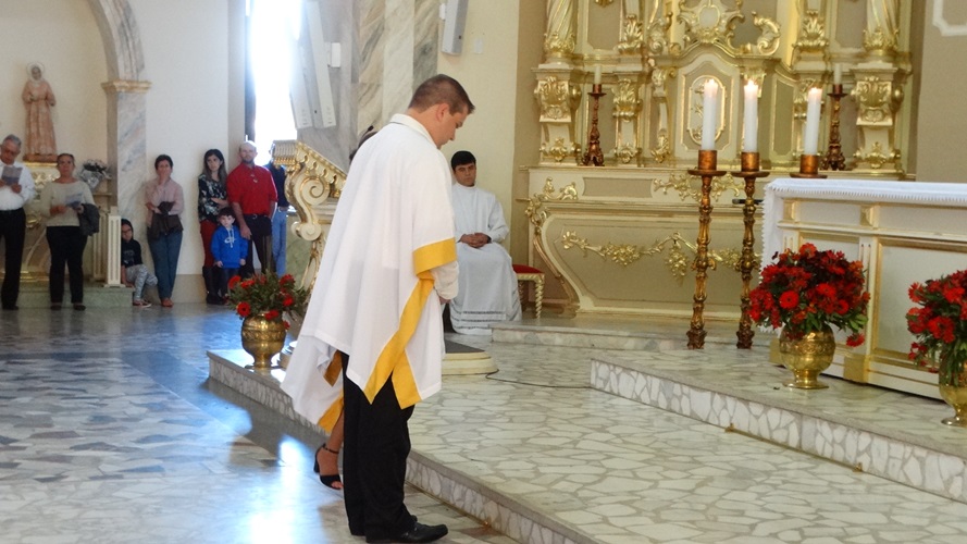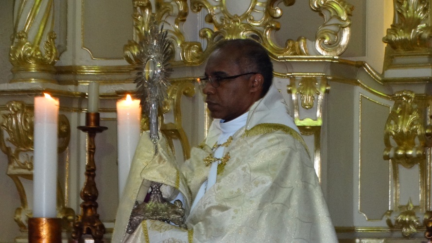 “O Santo Evangelho, o sexto capítulo de João, temos o discurso do Pão da Vida. Mais uma vez Jesus resgata a importância do pão. Hoje é a festa da presença real de Cristo! […] Jesus pega essa imagem: ‘Este pão que eu vos dou leva para a vida eterna!’. O que nós comungamos na eucaristia hoje é uma antecipação da eternidade. […] Mas assim como o alimento de Jesus era fazer a vontade do Pai, ele nos dá o alimento para quem come a sua carne e bebe o seu sangue. Por isso Ele fala da unidade: ‘Quem come a minha carne e bebe o meu sangue permanece em mim e eu nele.’ Daí a ideia do sacramento da unidade: Jesus está unido a nós quando comungamos deste augusto sacramento da eucaristia!”