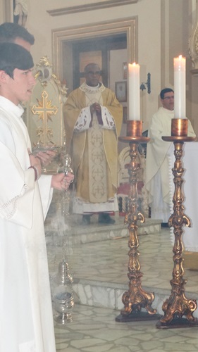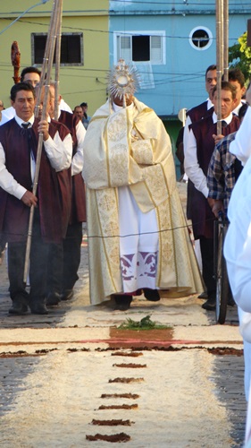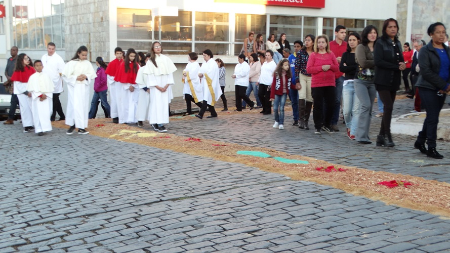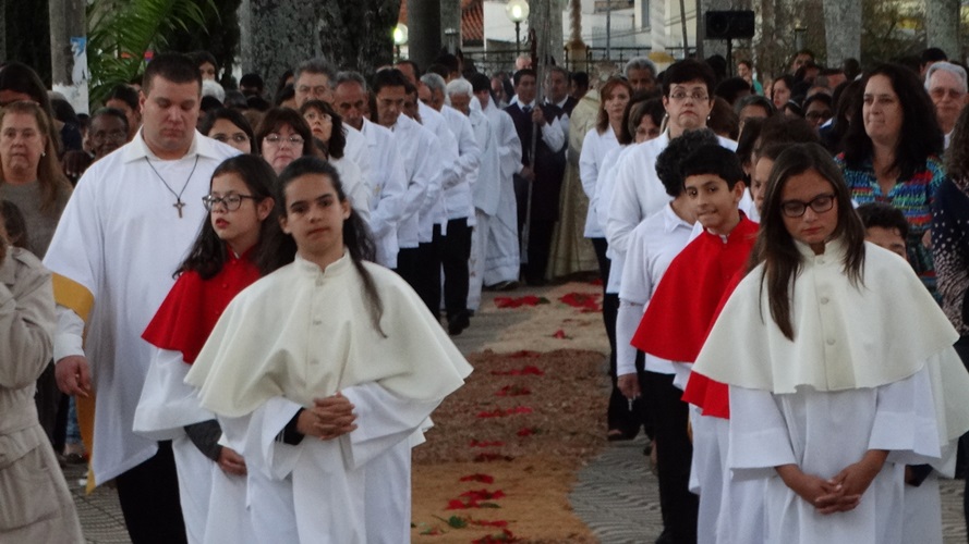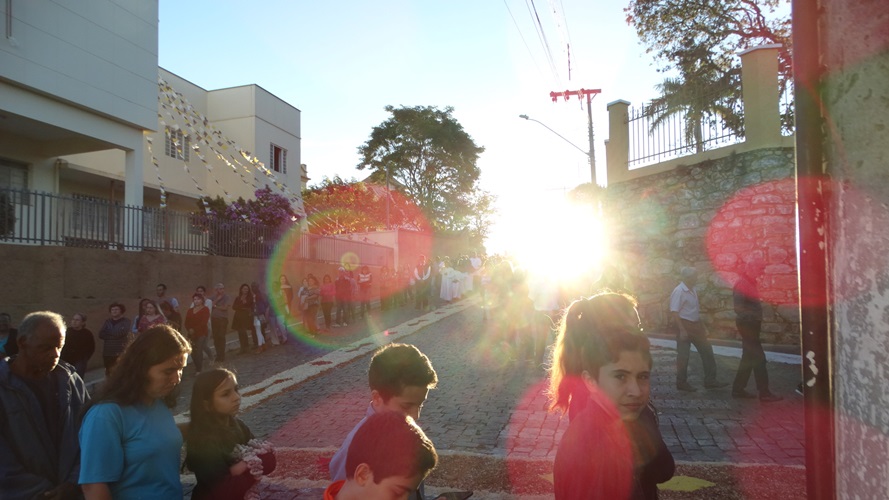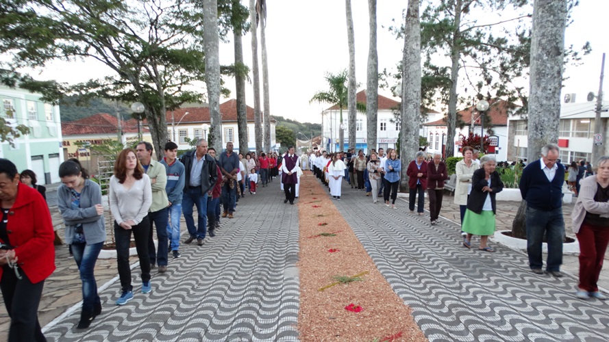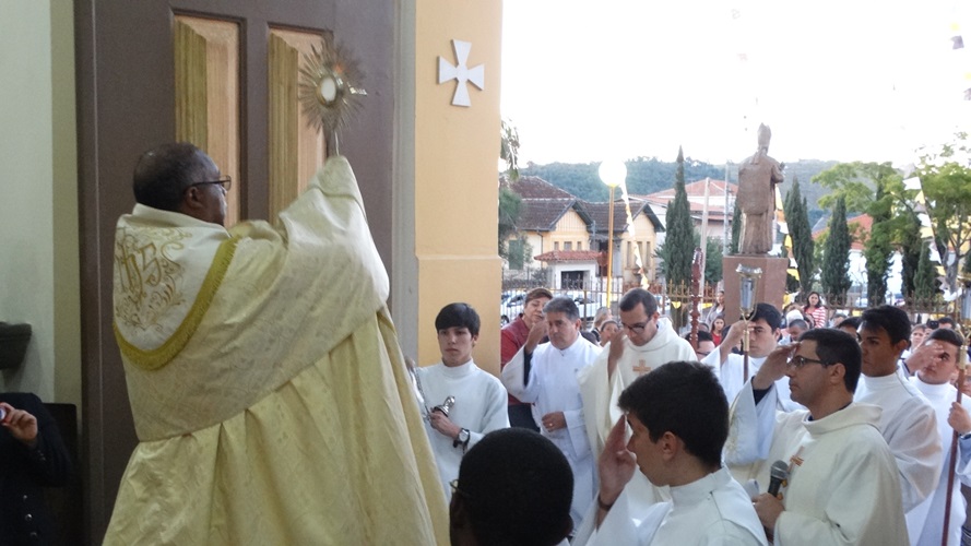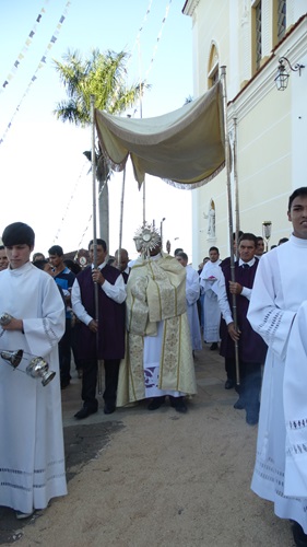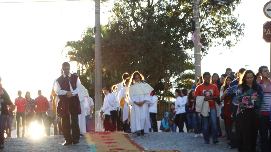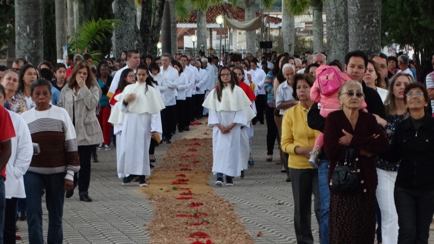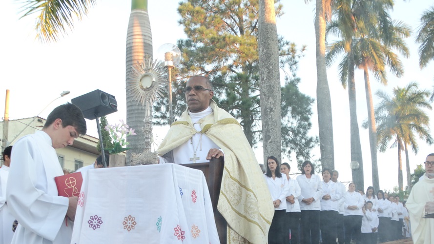 Após a missa solene das 15, os fiéis saíram em procissão pelas ruas da cidade. A procissão este ano aconteceu ao redor da praça D. Ferrão, onde está localizada a Catedral Santo Antônio. Durante o percurso, foram realizadas três paradas com a Bênção do SSmo. Sacramento. E quarta bênção foi realizada no retorno da procissão à Catedral. Animou a procissão com cânticos e orações, o vigário Paroquial, Pe. Edson.