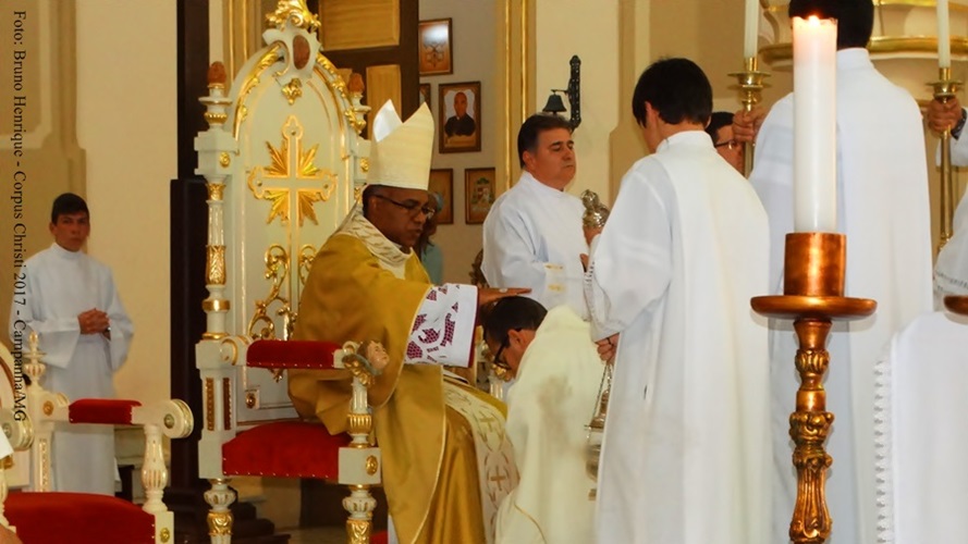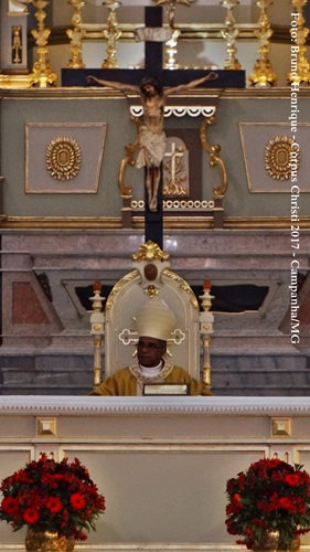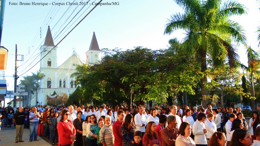 Na última quinta-feira, dia 15 de junho, a Igreja celebrou a Solenidade do Santíssimo Corpo e Sangue de Cristo. Na paróquia Santo Antônio de Campanha, sé diocesana, foram celebradas 3 missas: 7h, 10h e 15h. Durante a celebração das 10h, os Ministros da Comunhão realizaram, na presença do vigário paroquial, Con. José Hugo Goulart, a renovação dos votos. Às 15h, foi celebrada a missa solene, presidida pelo bispo diocesano, D. Pedro Cunha Cruz. Após a celebração, foi realizada a procissão com o Santíssimo Sacramento pelas ruas da cidade. A celebração vespertina foi concelebrada pelo pároco e chanceler do bispado, Pe. Luzair Coelho de Abreu; pelo vigário e reitor do Seminário Propedêutico S. Pio X, Pe. Edson Pereira de Oliveira. Cantou a celebração, o Coral Catedral, sempre presente nas celebrações e momentos solenes da paróquia.