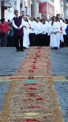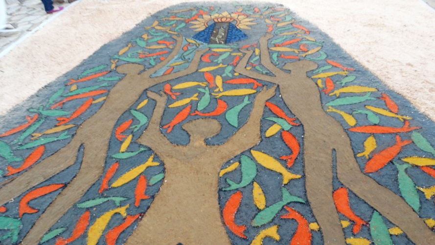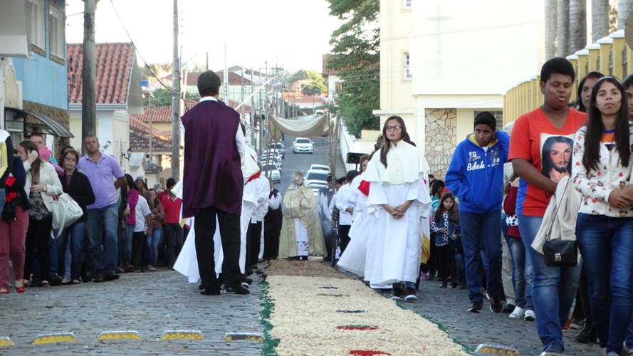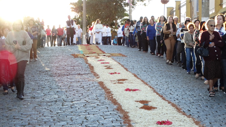 A tradição dos tapetes de Corpus Christi foi introduzida no Brasil pelos colonizadores portugueses. Muitas cidades enfeitam as ruas com tapetes coloridos para a passagem do Santíssimo Sacramento. A confecção dos tapetes representam a manifestação pública da crença dos fiéis no Jesus Sacrementado. Os desenhos, geralmente são temas eucarísticos. E os materiais utilizados são próprios de cada local. Aqui em Campanha, rica em oficinas de artesanato e marcenarias, o principal material é a serragem. As equipes de ornamentação começam as atividades no começo da manhã. Para melhor organização, a prefeitura municipal demarca o trajeto da procissão, assinalando o caminho por onde as equipes deverão confeccionar o tapete.