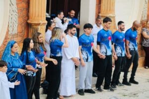 Sendo calorosamente acolhidos no Santuário, todos tiveram a  oportunidade de participar do ápice da peregrinação, a Santa Missa,